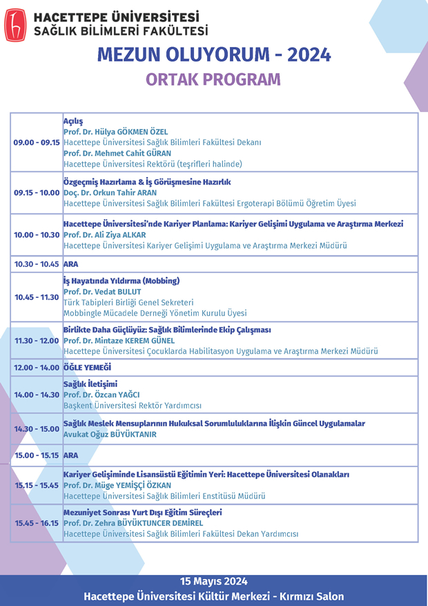 13-14 Haziran Tarihlerinde Yapılacak olan Fakültemiz ve Bölümümüze ait Mezun Oluyorum Etkinliği Programı