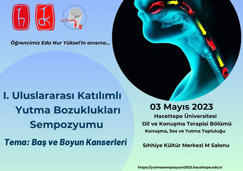 gerçekleştirilecek olan 'I. Uluslararası Katılımlı Yutma Bozuluklukları Sempozyumu'nda, 'Baş ve Boyun Kanseri' tanılı bireylerde görülen yutma bozukluklarında değerlendirme, tanı ve tedavi/terapi yönleri multidisipliner olarak ele alacaktır. Katılım ücretsizdir. Etkinlikle ilgili ayrıntılı bilgiye