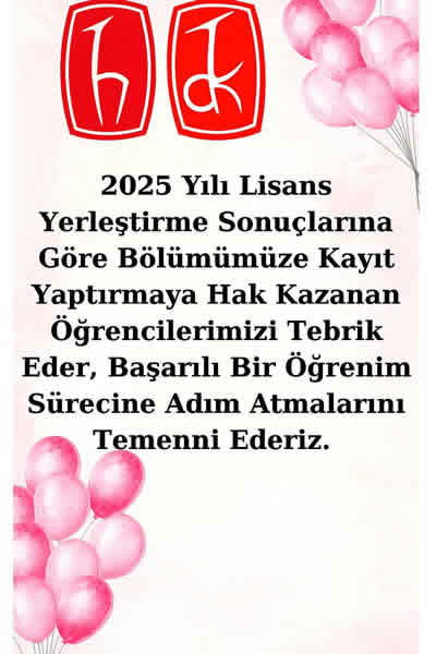 2024-2025 Eğitim-Öğretim Yılında Üniversitemize yeni kayıt yaptıran öğrencilerin üniversite yaşamına uyumlarını kolaylaştırmak üzere açılan "ÜNİ 101 Üniversite Yaşamına Giriş" dersinin Bölümümüz tanıtımı ile Kampüs Turu Etkinliği 18 Eylül 2024 Çarşamba saat 14.00'te Soner Özkan Amfisinde gerçekleşecektir.